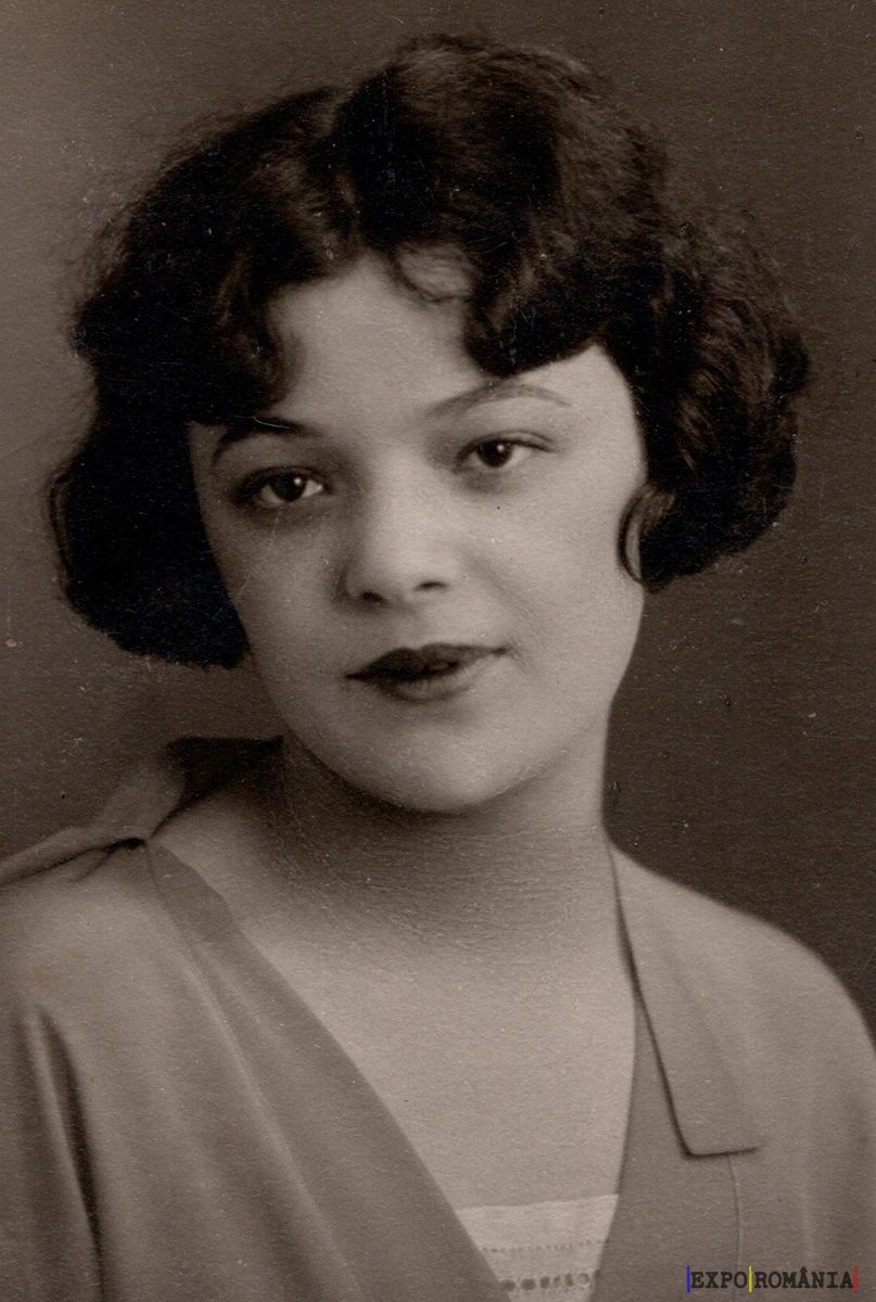 Imaginea prezintă o fotografie veche, alb-negru, a unei femei tinere. Ea are părul scurt, ondulat, și o expresie calmă pe față. Poartă un top simplu, deschis la gât. Privirea ei este directă către camera, oferind un aer de încredere și serenitate. Fotografia are un stil clasic, evocând o perioadă din trecut.