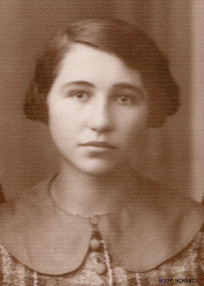Fotografia prezintă o persoană de sex feminin, cu părul scurt și închis la culoare, pieptănat ordonat într-o parte. Expresia ei facială este serioasă, iar privirea este îndreptată direct către camera foto. Poartă o haină cu guler rotunjit și câțiva nasturi vizibili în partea de sus. Imaginea este sepia, sugerând că este o fotografie veche, probabil din prima jumătate a secolului al XX-lea. Fundalul este simplu și uniform, fără detalii specifice.