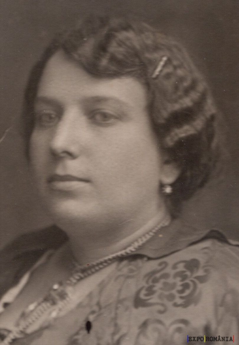 Imaginea este un portret alb-negru al unei femei. Femeia are părul ondulat și poartă un ac de păr. Este îmbrăcată într-o bluză decorată cu un model floral sau geometric. De asemenea, ea poartă cercei și un colier. Expresia sa facială este serioasă sau neutră, iar privirea este îndreptată spre cameră.
