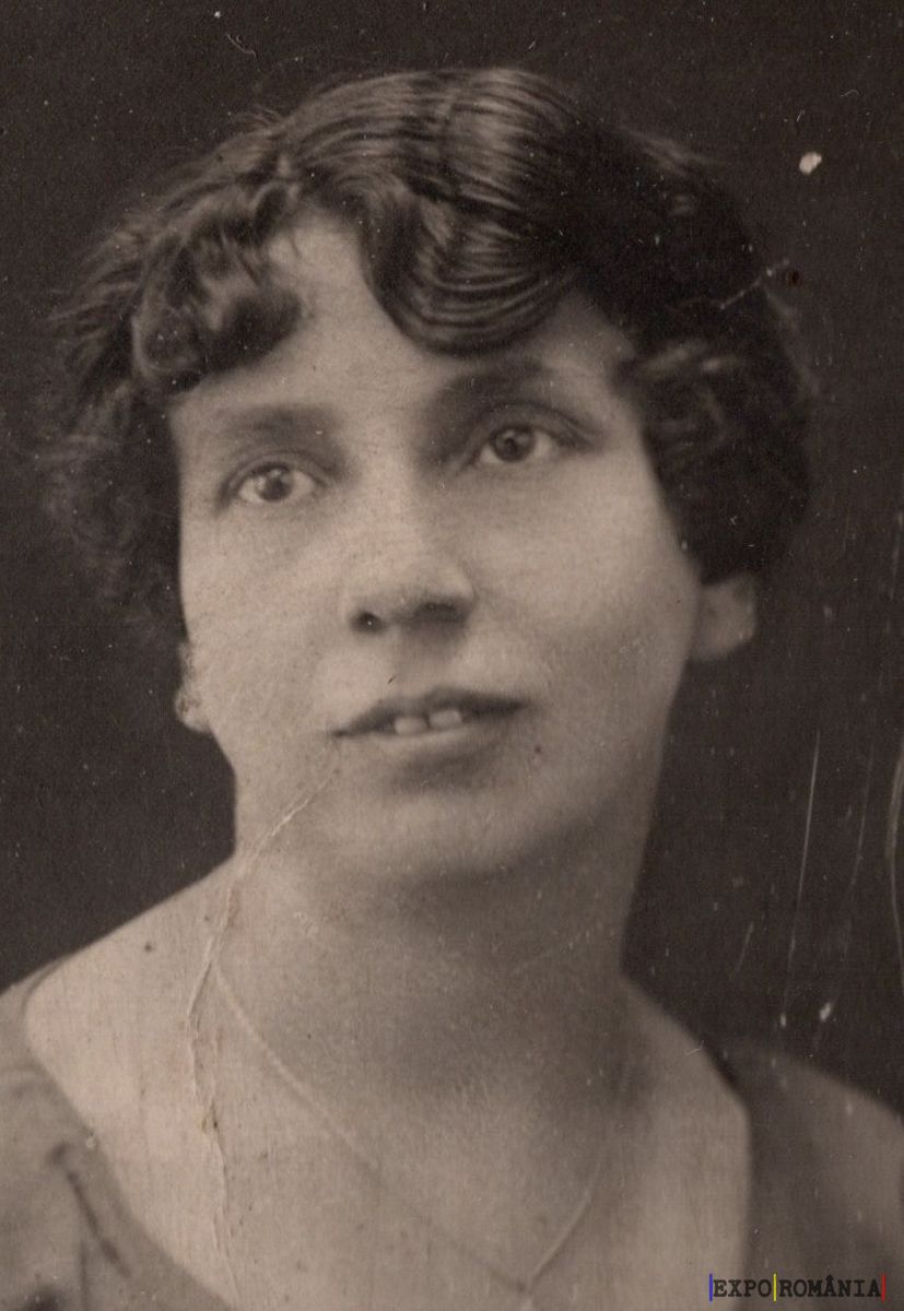 Fotografia este un portret alb-negru al unei femei. Aceasta are părul scurt, ondulat și este imbracată într-o bluză simplă. Femeia pozează cu o expresie relaxată și ușor zâmbitoare, uitându-se drept înainte. Fundalul este simplu, fără detalii.