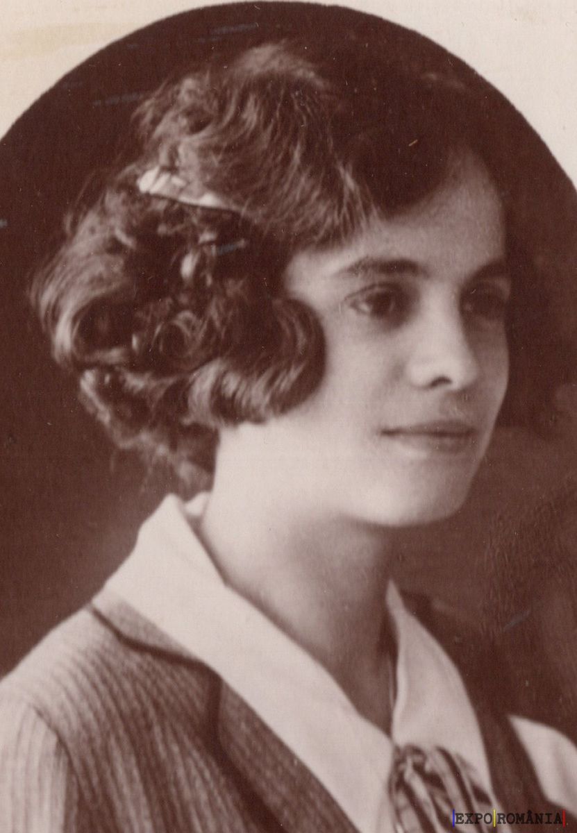 Imaginea este un portret alb-negru al unei tinere femei cu păr scurt, ondulat, tuns în stilul bob. Ea poartă o vestimentație formală, posibil un sacou și o bluză cu guler. Figura este prezentată din față, dar ușor orientată într-o direcție laterală. Expresia feței este calmă și serioasă. Fotografia are un aer vintage, sugerând că ar putea fi realizată în prima jumătate a secolului al XX-lea.