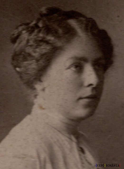 Imaginea prezintă un portret sepia al unei femei, realizat cel mai probabil în jurul începutului secolului XX. Ea este orientată ușor spre dreapta, iar privirea ei este îndreptată în aceeași direcție. Femeia are părul aranjat într-un stil specific acelei perioade, cu bucle strânse și părul prins la spate. Poartă o haină deschisă la culoare cu un guler înalt, iar fața ei exprimă o atitudine calmă și serioasă. Fundalul imaginii este simplu, fără detalii evidente, ceea ce pune accent pe figura subiectului. Aspectul general sugerează un portret de studio.