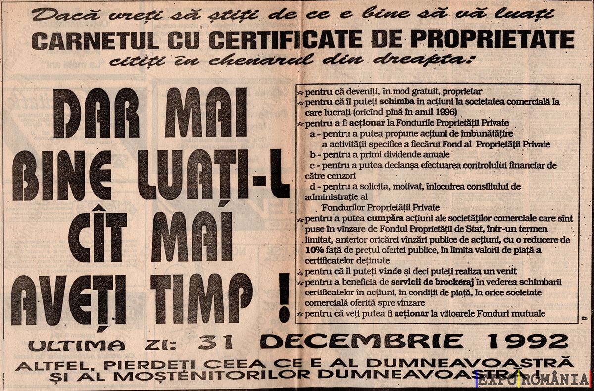 CARNETUL CU CERTIFICATE DE PROPRIETATE