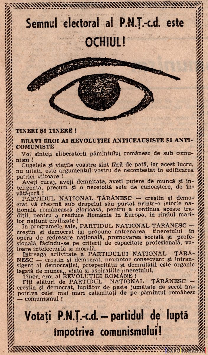 Semnul electoral al P.N.T.-c.d. este OCHILUL!