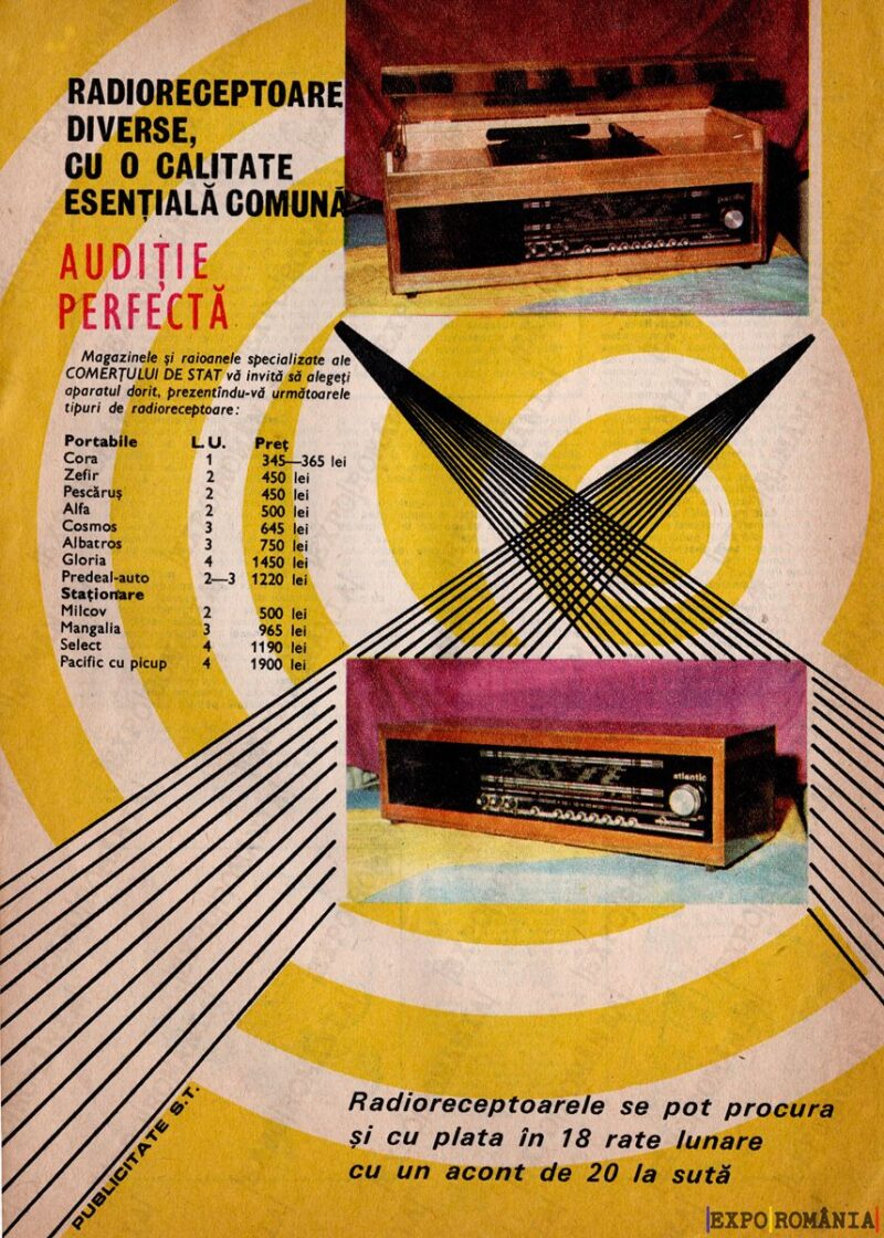 Radiorecepțoarele se pot procura și cu plata în 18 rate lunare cu un acont de 20 la sută.