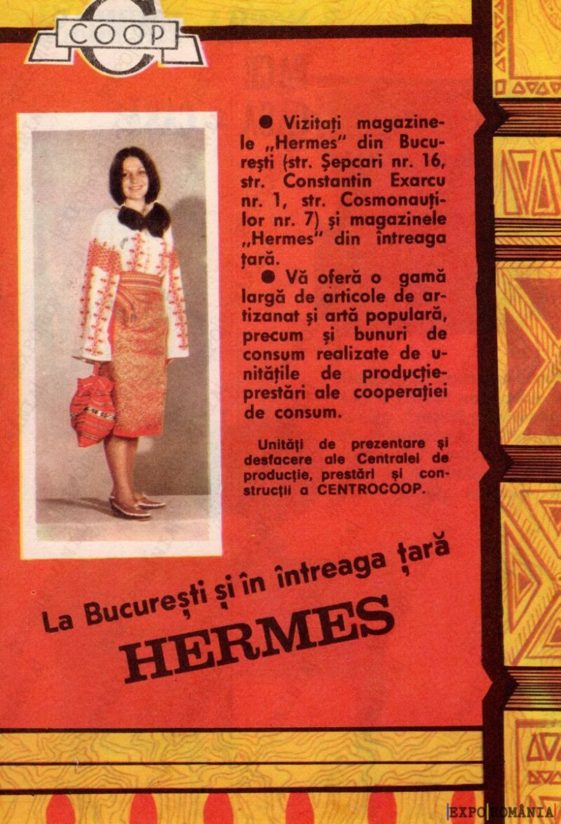 Vizitați magazinele „Hermes” din București: Splaiul nr. 16, str. Constantin Enacov nr. 1, St. Cosmonautilor nr. 7, și magazinele „Hermes” din întreaga țară.
