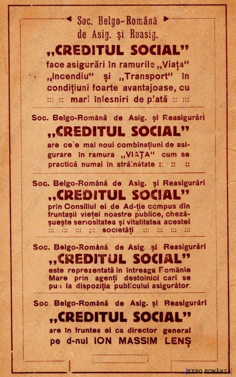 „CREDITUL SOCIAL” face asigurări în ramurile „Viață”, „Incendiu” și „Transport” în condiții foarte avantajoase, cu mari înlesniri de plată.