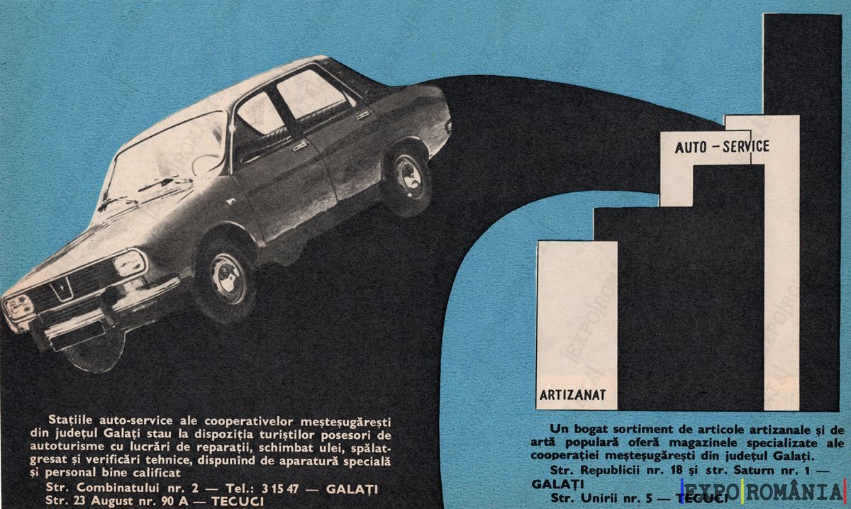 Stațiile auto-service ale cooperativelor meșteșugărești din județul Galați sunt la dispoziția turiștilor posesori de autovehicule din lucrări de reparații, servicii de tunning, specializări generale, service de aparate speciale pentru automobile.