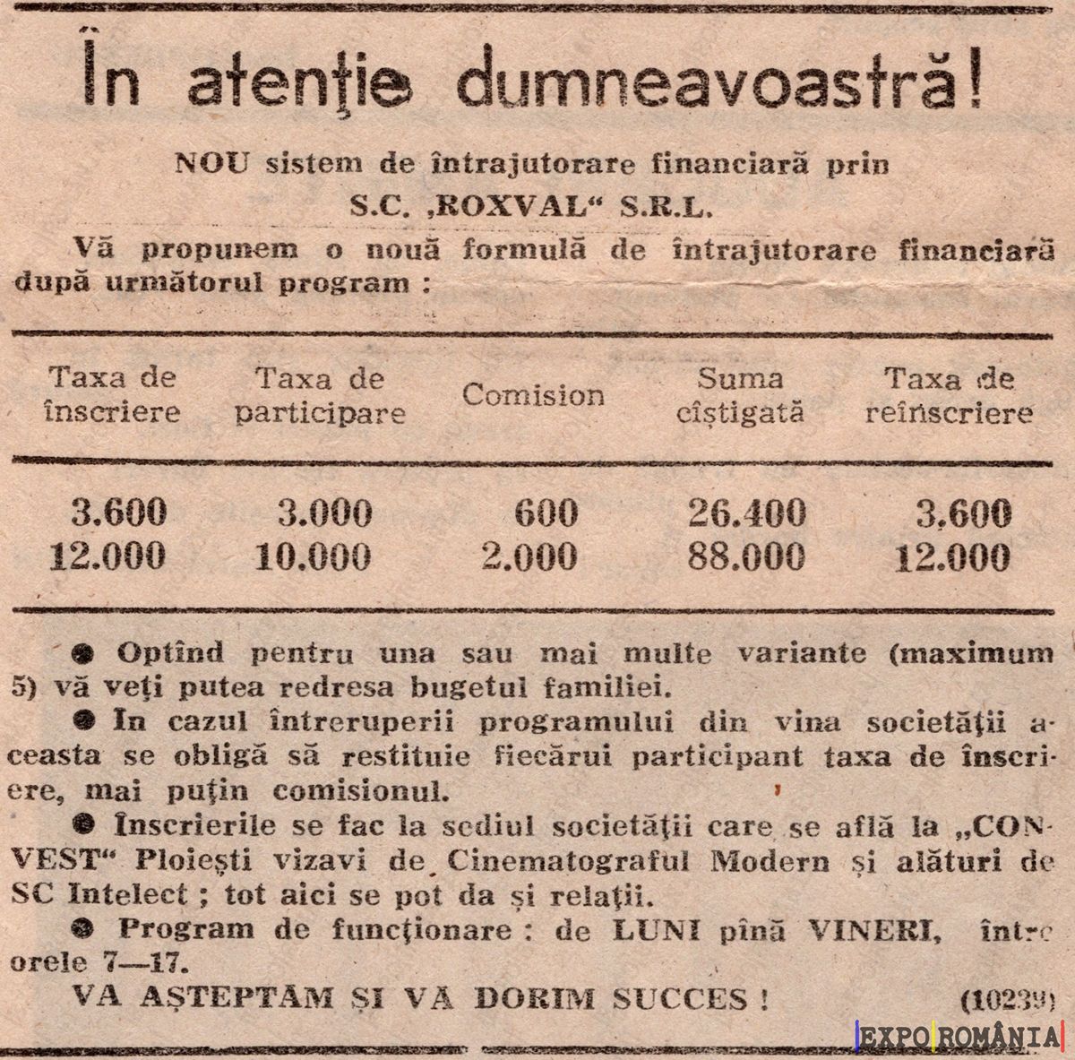 NOU sistem de întrăturătoare financeiră prin S.C. ROXVAL S.R.L.