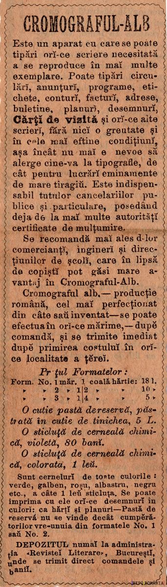 Cromograful-Alb, în mod perfect, s-ar lăsa astfel în locuri neîmtărcate, chiar dovratice, deși se păstrează în oră.
