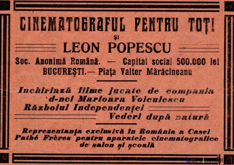 Reprezentanţa exclusivă în România a Casei Pathé Frères pentru aparatele cinematografice de salon şi şcoală