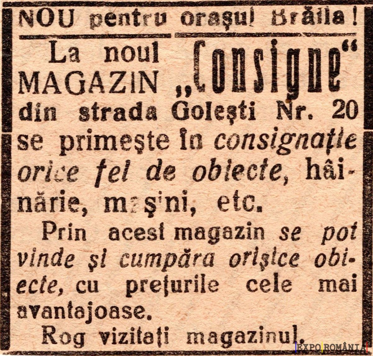 La noul MAGAZIN „Consigne” din strada Golești Nr. 20 se primește în consignație orice fel de obiecte, hainărie, mășini, etc.