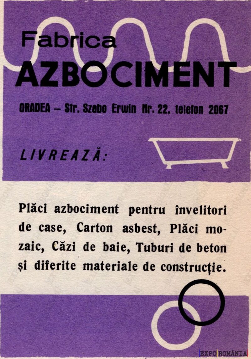Plăci azbociment pentru învelitori de case, Carton asbestos, Plăci mozaic, Cazi de baie, Tuburi de beton și diferite materiale de construcție.