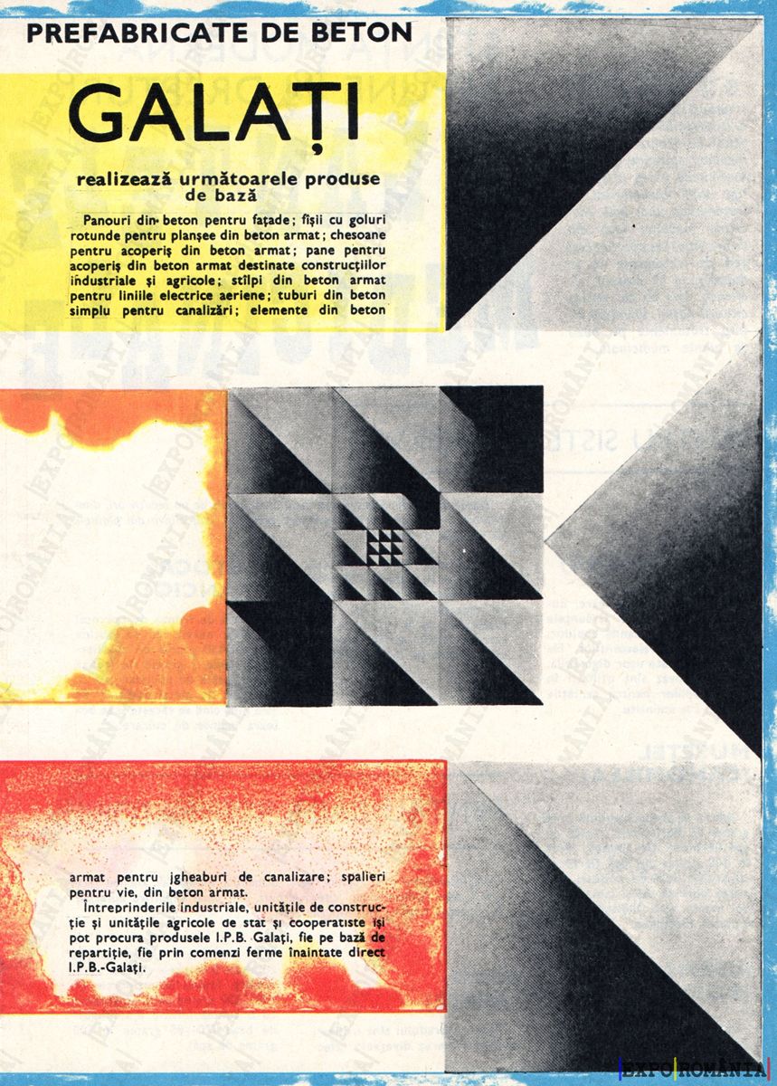 armat pentru jgheaburi de canalizare; spaliere pentru lucernă, tuburi, plăci de fundație si pentru construcții din beton, elemente I.P.B. Galați.