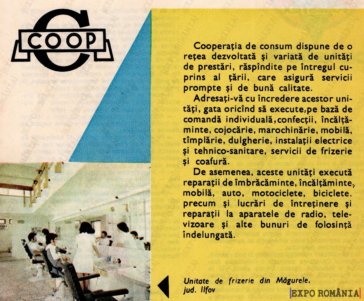 adresati-va cu incredere acestor unitati, gata oricind sa execute, pe baza de comanda individuala, confectioni, incaltaminte, cojoace, marochinarie, mobila, timplarie, dulgherie, instalatii electrice si sanitare, servicii de frizerie si coafura.