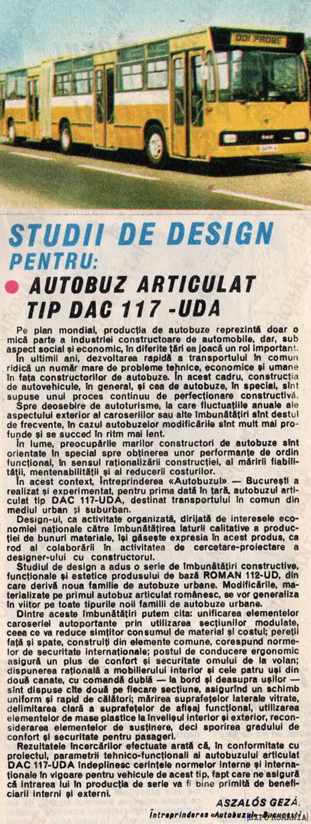 Pe plan mondial, producţia de autobuze reprezintă dorinţa de a răspunde nevoilor de transport urban. Diferenţele între tipurile de autobuze reprezintă o problemă complexă, cu un impact multiplu asupra transporturilor urbane. Studiile recente arată că autobuzele articulate pot reduce semnificativ costurile de operare. De aici, ideea de a construi un autobuz articulat DAC 117, un lucru care a prins avânt deja prin colaborarea cu UDA.