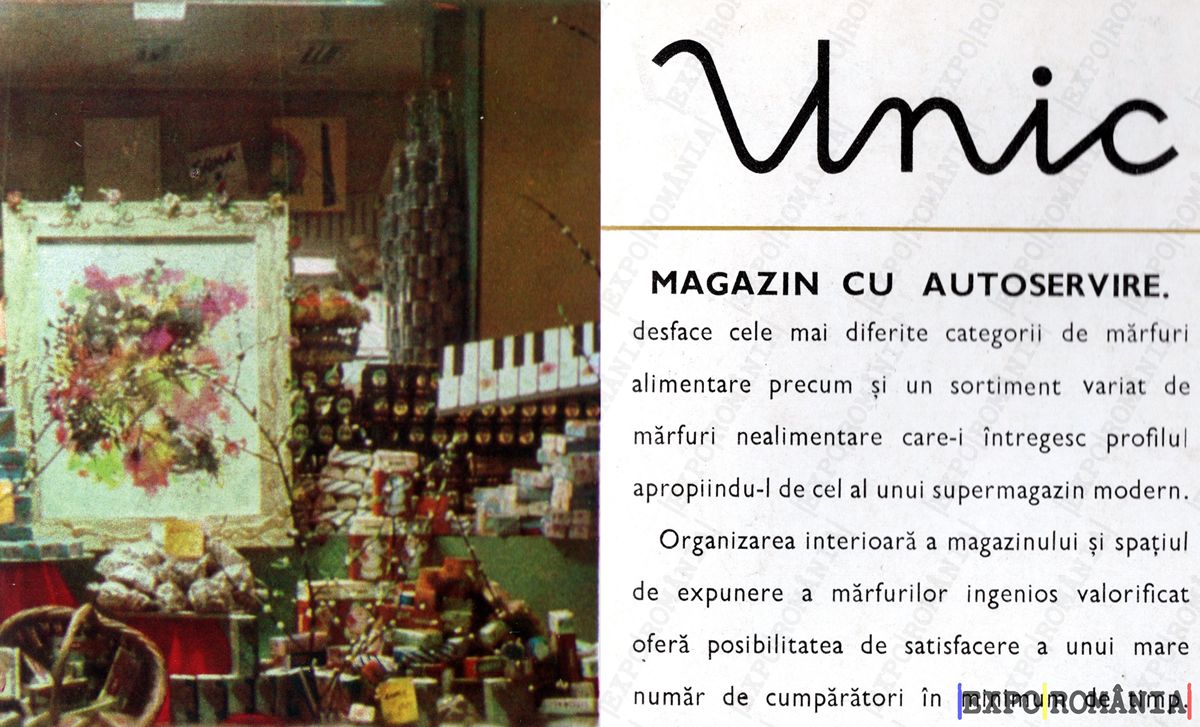 desface cele mai diferite categorii de mărfuri alimentare precum și un sortiment variat de mărfuri nealimentare care- înglăgesc profilul apropiund-de cel al unui supermarket modern.