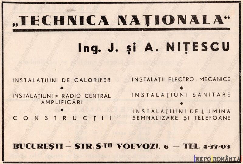 BUCUREȘTI – STR. S.T. VOIVOZI, 6 – TEL. 4-77-03