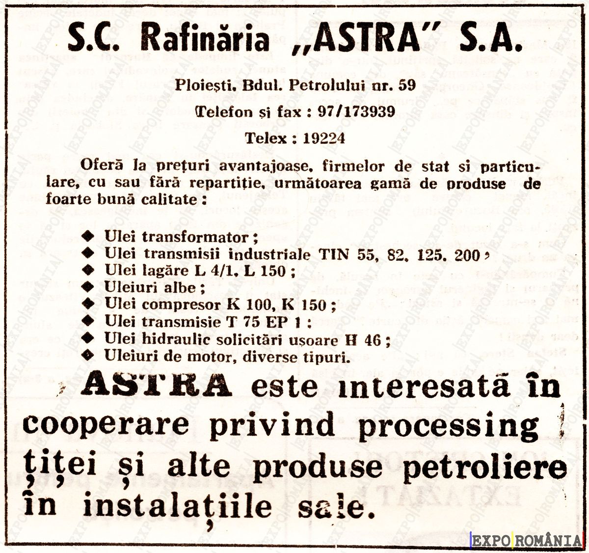 ASTRA este interesată în cooperare privind processing, țitei și alte produse petroliere în instalațiile sale.