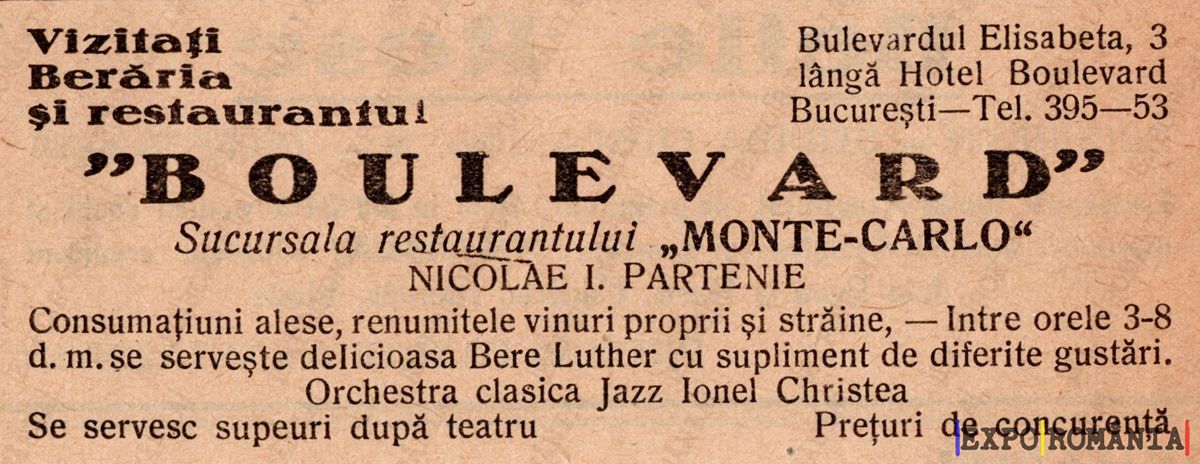 Consumatiuni alese, renumitele vinuri proprii și străine, — Între orele 3-8 d.m. se serveste delicioasa Bere Luther cu supliment de diferite gustări.