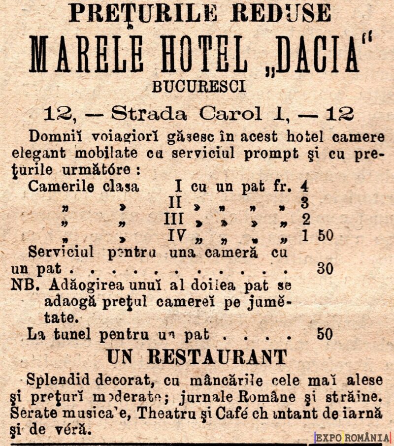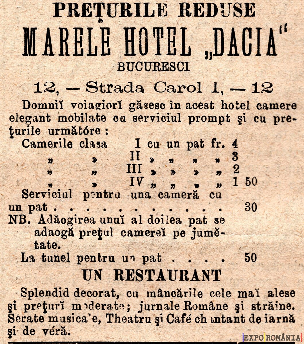 Splendid decorat, cu mâncăriele cele mai alese și prețuri moderate, jurnalele Române și străine.