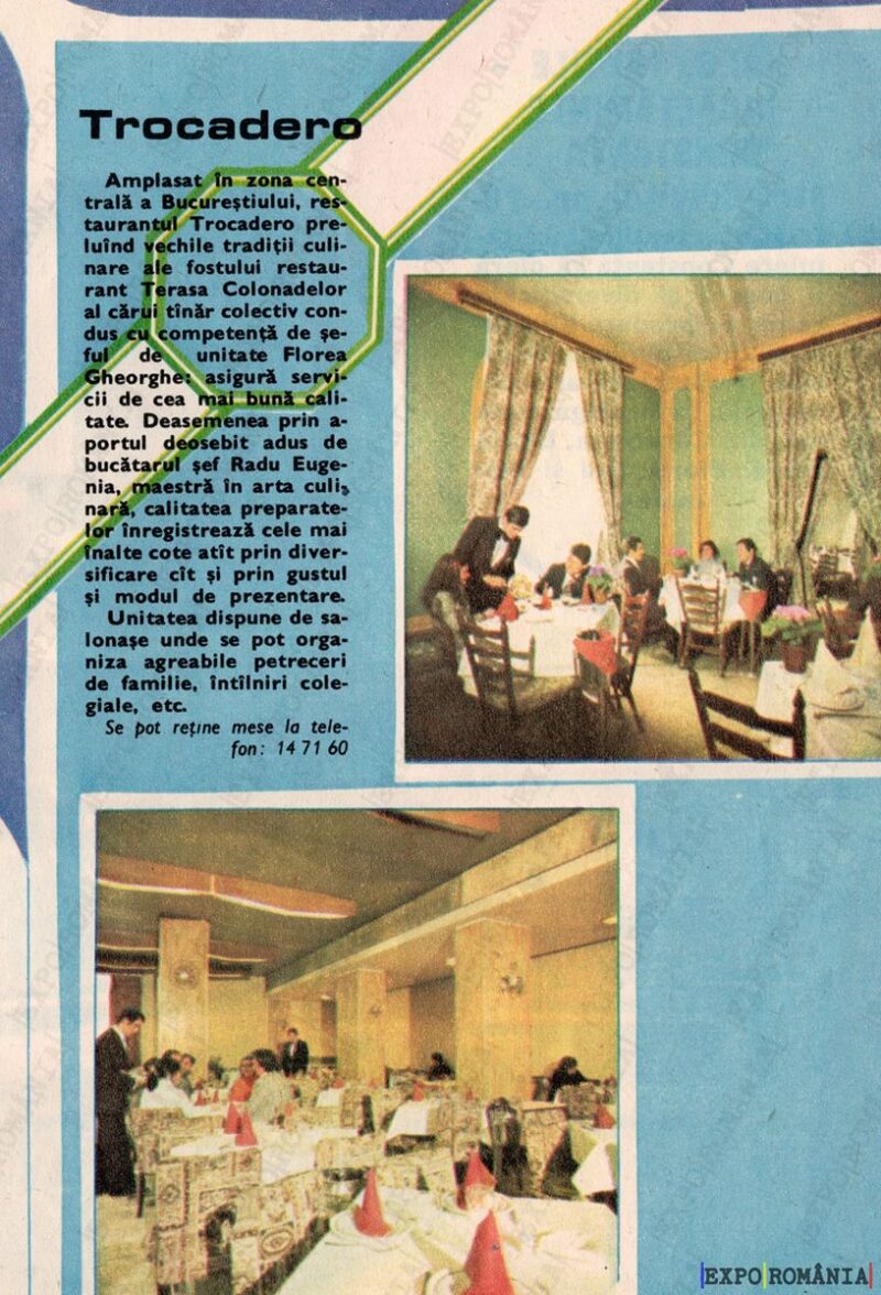 Amplasat in zona centrala a Bucurestiului, restaurantul Trocadero preia unele traditii culinare din fostul restaurant Radio, oferind de asemenea cocktail-uri traditionale concepute de somelierul Florin Gheorghe.