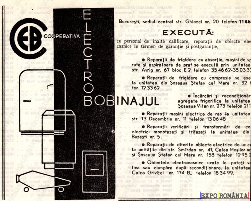 Reparații de frigidere cu compresor se fac la unitatea din Soseaua Ștefan cel Mare nr. 32 telefon 12 33 62.
