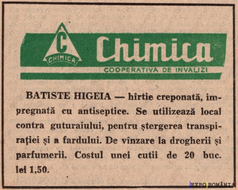BATISTE HIGIEA — hirtie creponată, impregnată cu antiseptice. Se utilizează local contra guturaiului, pentru ștergerea transpirației și a fardului. De vânzare la drogării și parfumării.