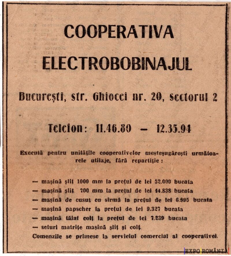 Excepția pentru inițiativele cooperativelor meșteșugărești următoarele utilaje, fără repartiție: