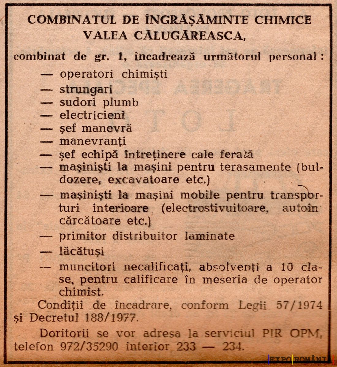 Condiții de încadrate, conform Legii 57/1974 și Decretul 188/1977.