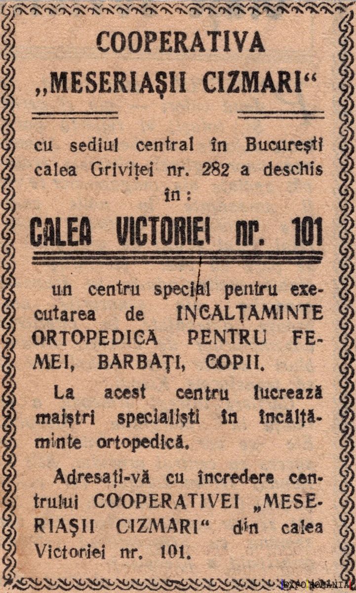 Please address your inquiries to the cooperative „MESERIAȘII CIZMARI“ din calea Victoriei nr. 101.