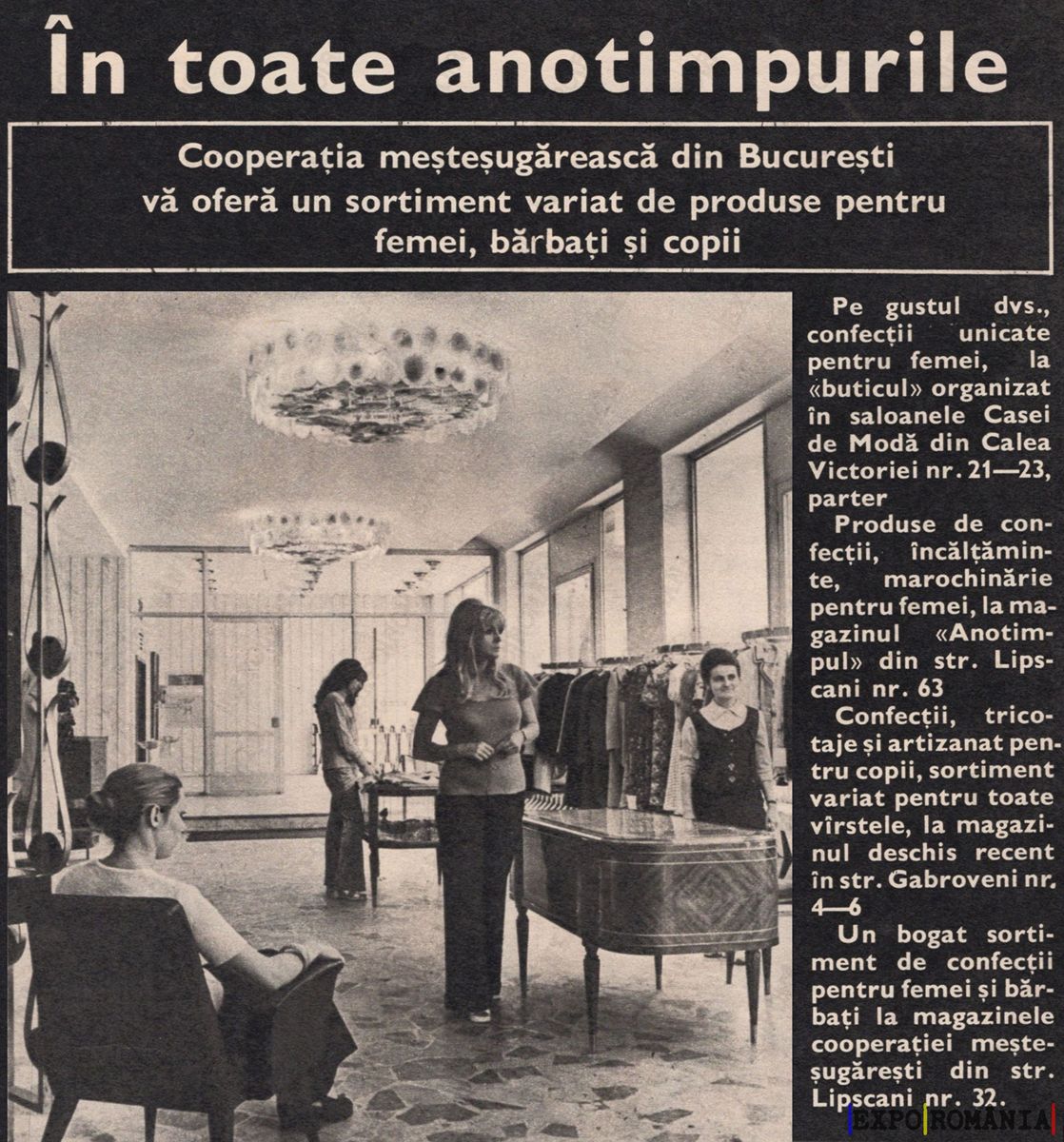 Produse de confecții, încălțăminte pentru femei, în magazinul “Anotimpul” din str. Lipscan nr. 63