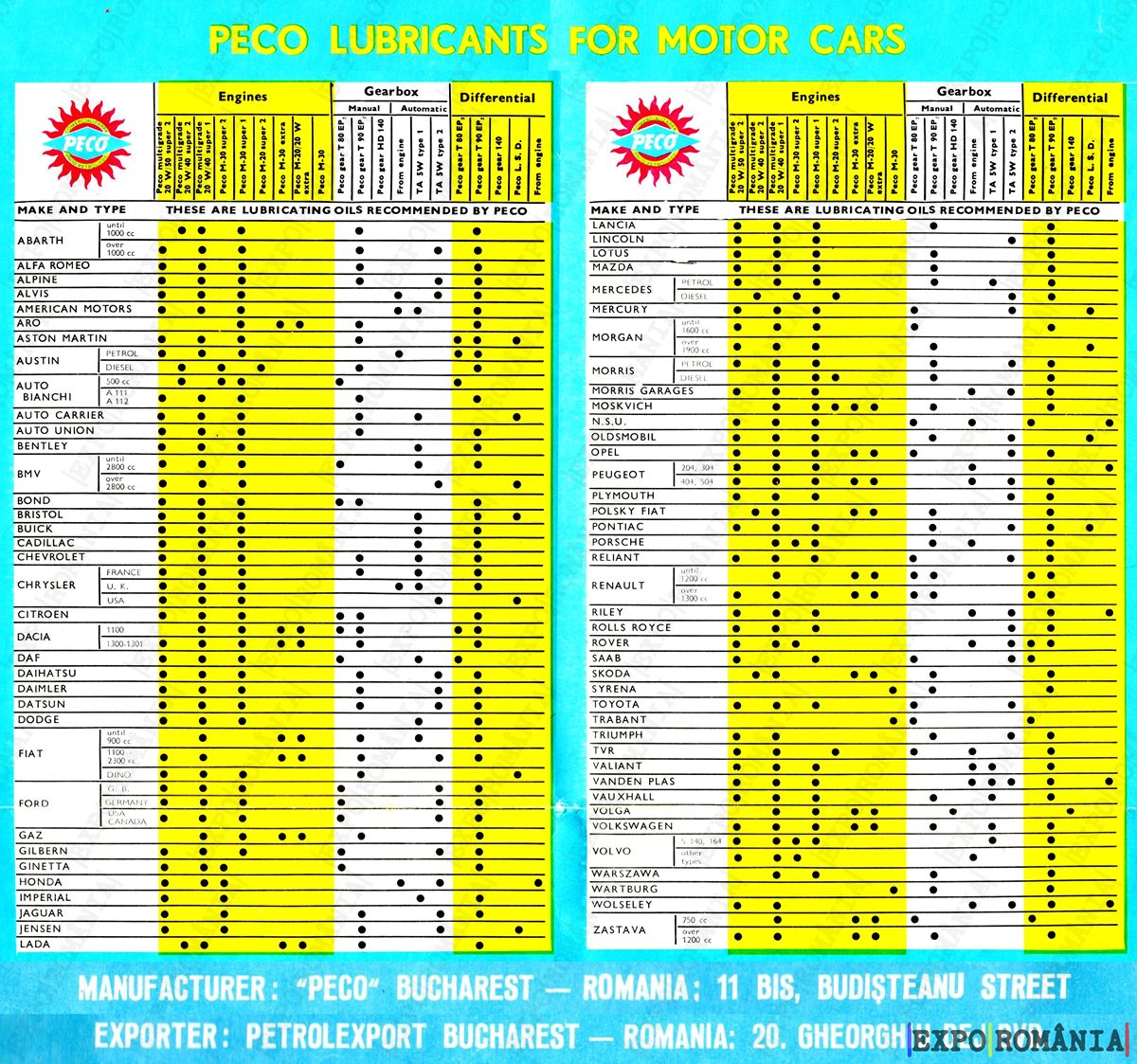MANUFACTURER: „PECO” BUCHAREST – ROMANIA: 11 BIS, BUDISTEANU STREET