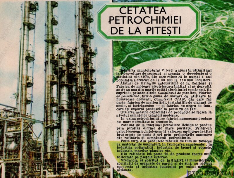 Industria, municipiului Pitești, a ajuns în ultimii ani la o dezvoltare spectaculoasă, având o dovadă în 3 instalații, în 1970, din care reiese că numărul și populația zonei a înregistrat o creștere susținută.