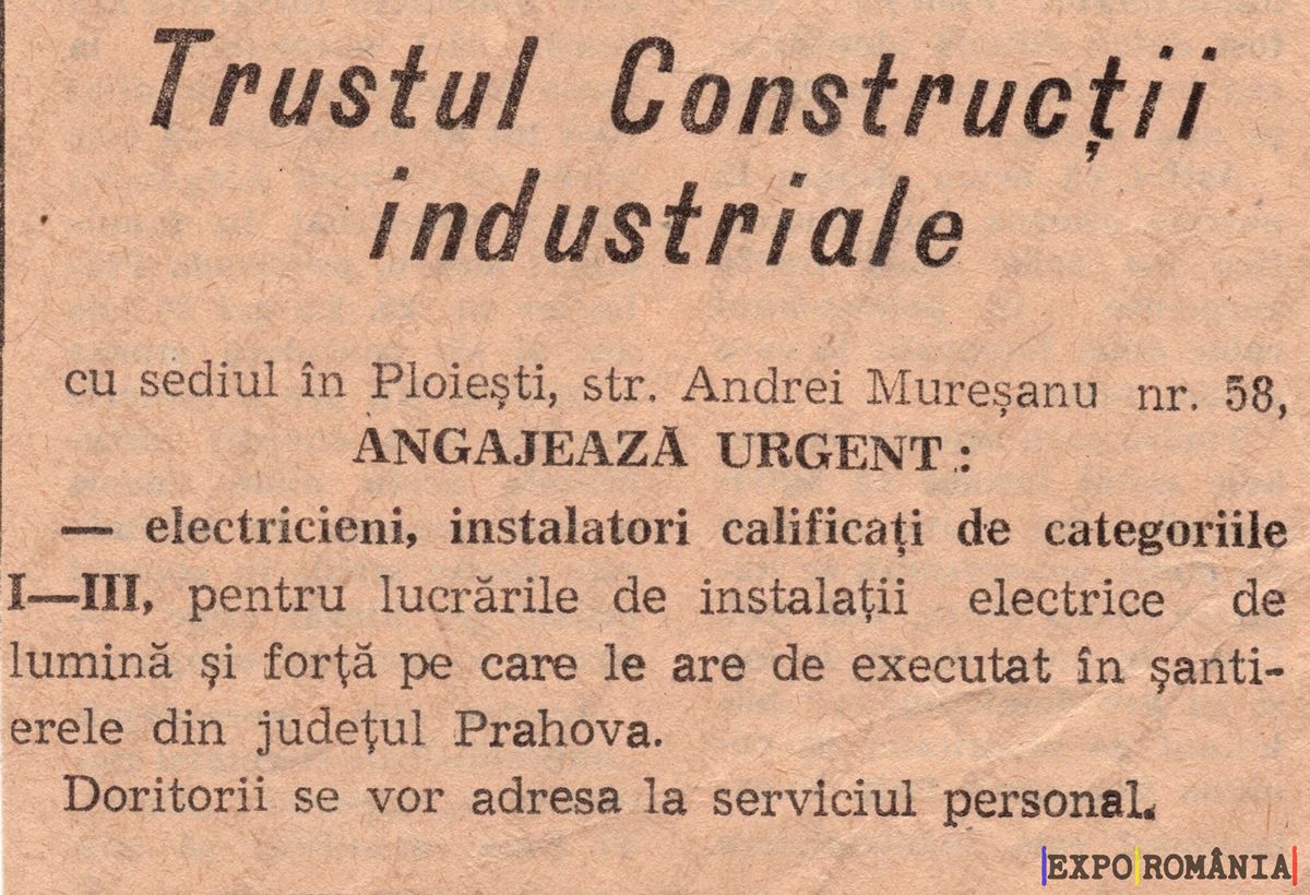 – electricieni, instalatori calificați de categoriile I–III, pentru lucrările de instalații electrice de lumină și forță pe care le are de executat în șantierele din județul Prahova.