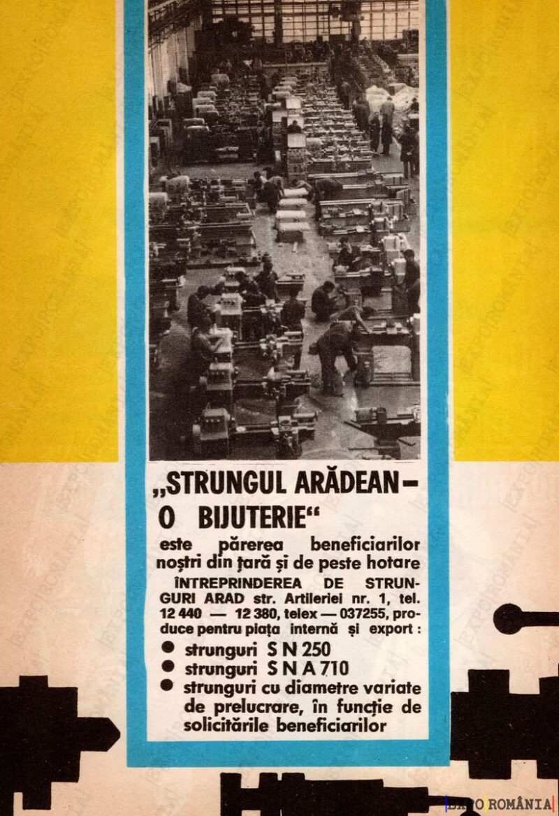 este părea beneficiilor nostril din țară și de peste hotare INTERPRINDEREA DE STRUNGURI ARAD str. Artilei nr. 1, tel. 12 440 – 12 380, fax – 037925, produce pentru piața internă și export: