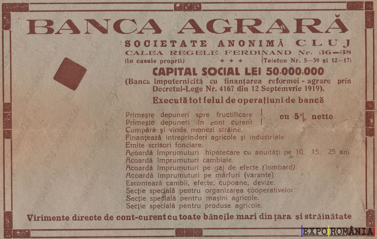 (Banca împrumutându-se cu finanțarea reformelor agrare prin Decretul-Lege Nr. 4167 din 12 Septembrie 1919.)