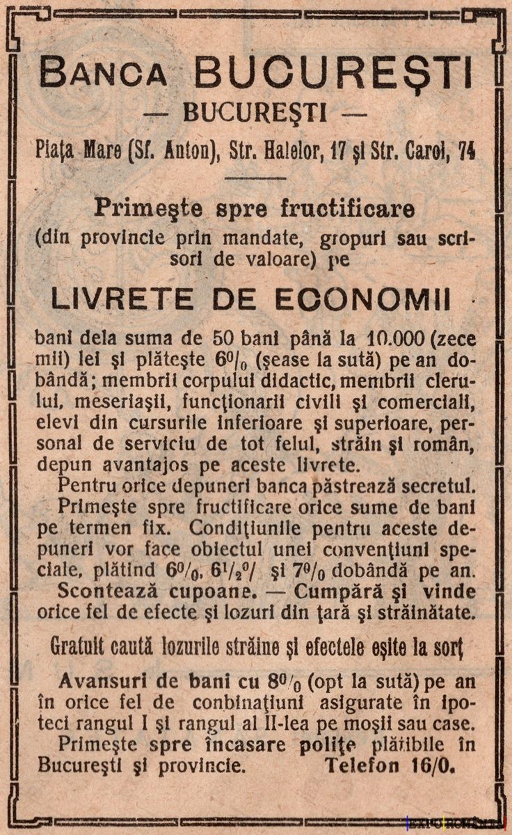bani dela suma de 50 bani până la 10.000 (zece mii) lei și plătește 6% (șase la sută) pe dobândă; membri corporali didactic, membri clericali, meseriași, funcționari civili și comerciali, elevi din circurile inferioare și superioare, persoane de serviciu de tot felul, străini și români.