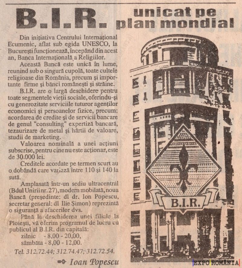 Din inițiativa Centrului Internațional Ecumenic, aflat sub egida UNESCO, la București funcționează, începând din acest an, Banca Internațională a Religioniilor.
