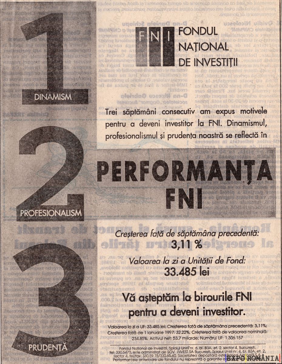 Trei săptămâni consecutiv am expus motivele pentru a deveni investitor la FNI. Dinamismul, profesionalismul si prudenta noastră se reflectă în