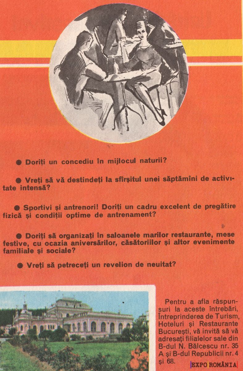 Pentru a afla răspunsuri la aceste întrebări, interpelați directorul Hotelului & Restaurantului București, în seara zilei de sâmbătă, 6.11.1982, la B-dul Republicii nr. 4, la 58.