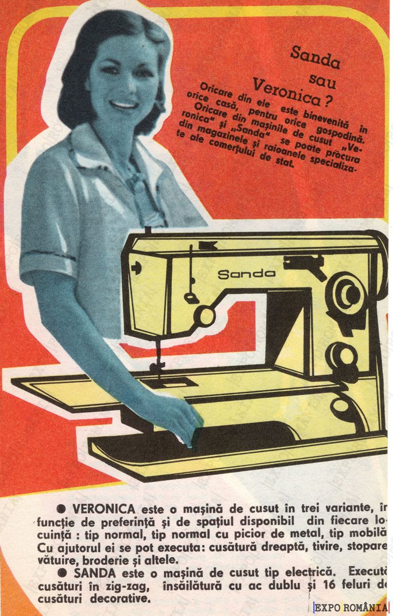 Oricare din mașinile de cusut „Verinica” și „Sanda” se poate procura din magazinele și raioanele specializate ale comerțului de stat.