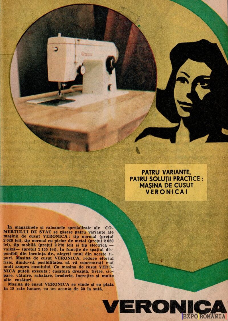 În magazinele și saloanele specializate ale COLECȚIILOR DE STAN VESELA – se prezintă gama completă a mașinilor de cusut VERONICA.