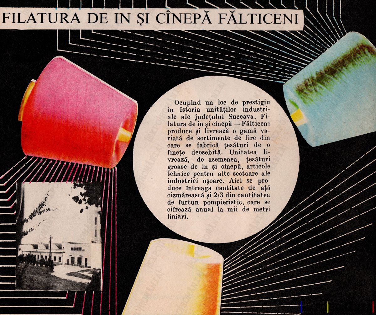 Ocupând un loc de prestigiu în istoria unităţilor industrielle ale judeţului Suceava, Filatura de in și cinepă Fălticeni produce și îşi derulează activitatea pe o bază de fabrică turistică de înaltă deschidere. Unităţile de producţie sunt dotate cu cele mai noi echipamente destinate pentru alte sectoare ale industriei uşoare. De asemenea, întreaga întreprindere are ca direcţie fructificarea celei de a 2-a din cantitate de fături pomiţe, care se realizează anual la minim de metri liniari.