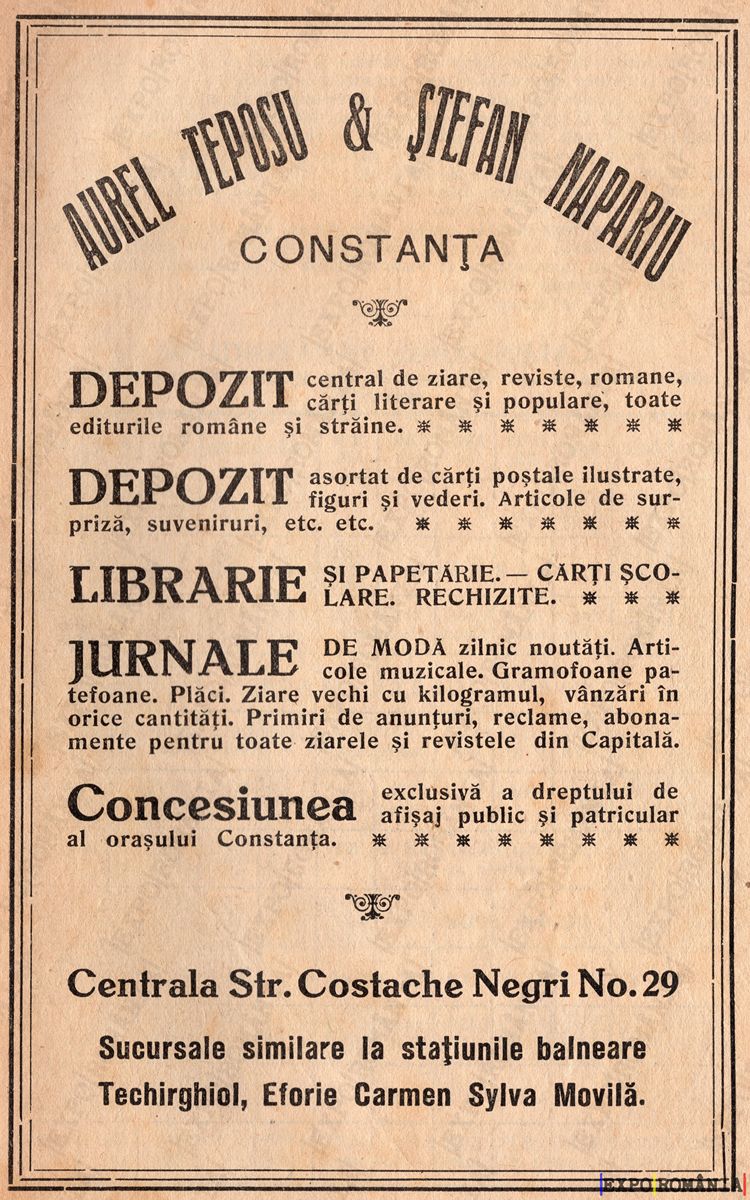 DEPOZIT central de ziare, reviste, romane, cărți literare și populare, toate editiile române și străine.