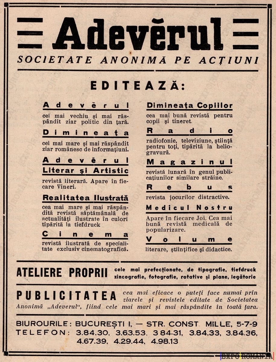 Anunturi „Adevarul”, toate in legatura cu Societatea.