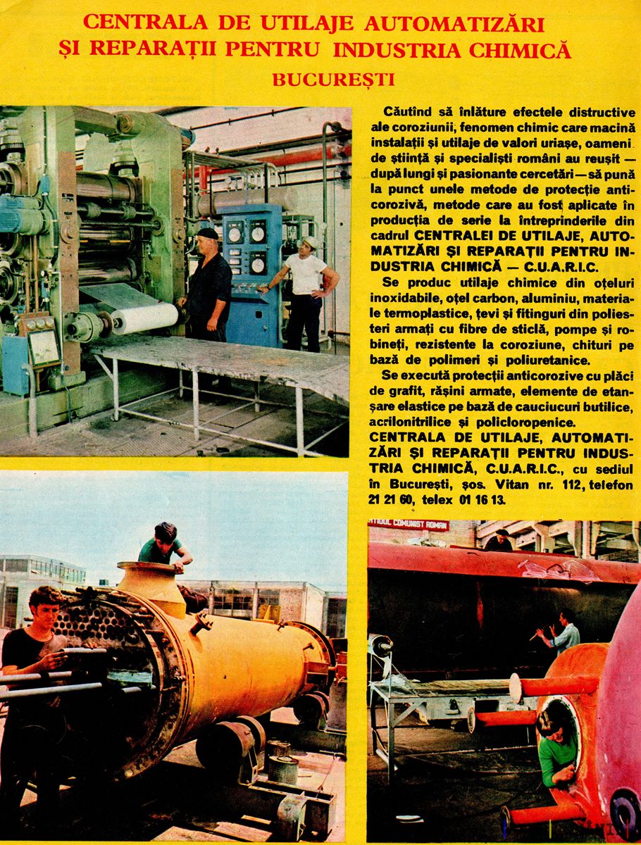 CENTRALA DE UTILAJE AUTOMATIZĂRI ȘI REPARAȚII PENTRU INDUSTRIA CHIMICĂ, C.A.P.I.L., este situată în București, str.ată 112, telefon 21 65 113.