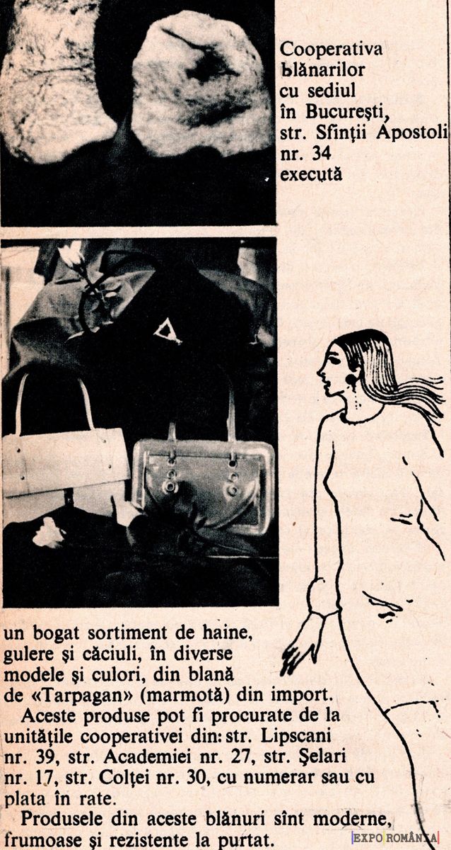 Aceste produse pot fi procurate de la unitățile cooperative dim. str. Lipscani nr. 39, str. Academiei nr. 27, str. Șelari nr. 17, str. Colței nr. 30, cu număr sau cu plata în rate.
