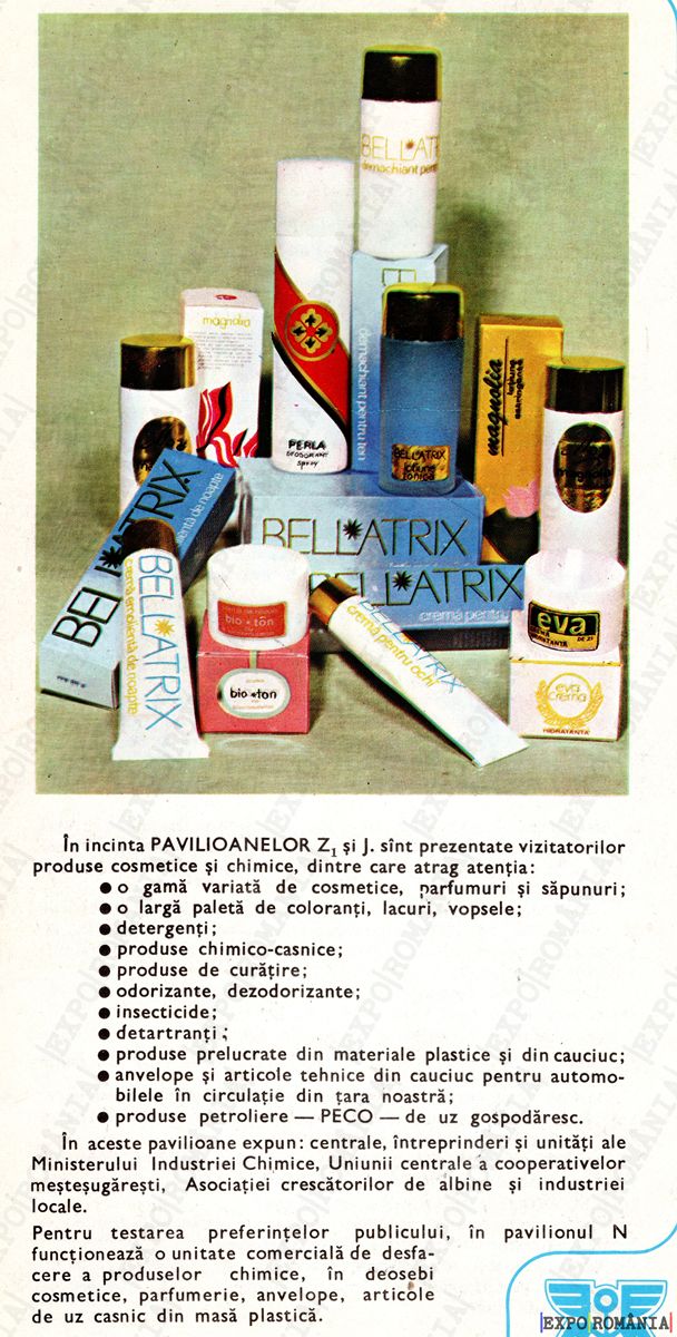 În incinta PAVILIONELOR Z, j, j sunt prezentate vizitatorilor produse cosmetice și chimice, dintre care atrag atenția: