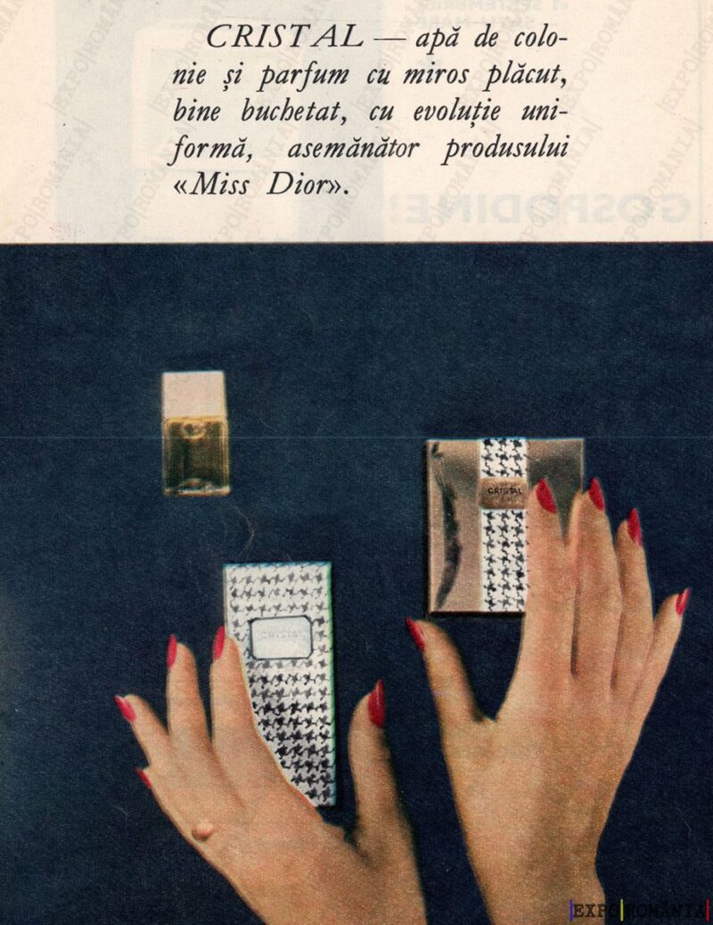 CRISTAL — apă de colonie și parfum cu miros plăcut, bine buchetat, cu evoluție uniformă, asemănător produsului «Miss Dior».